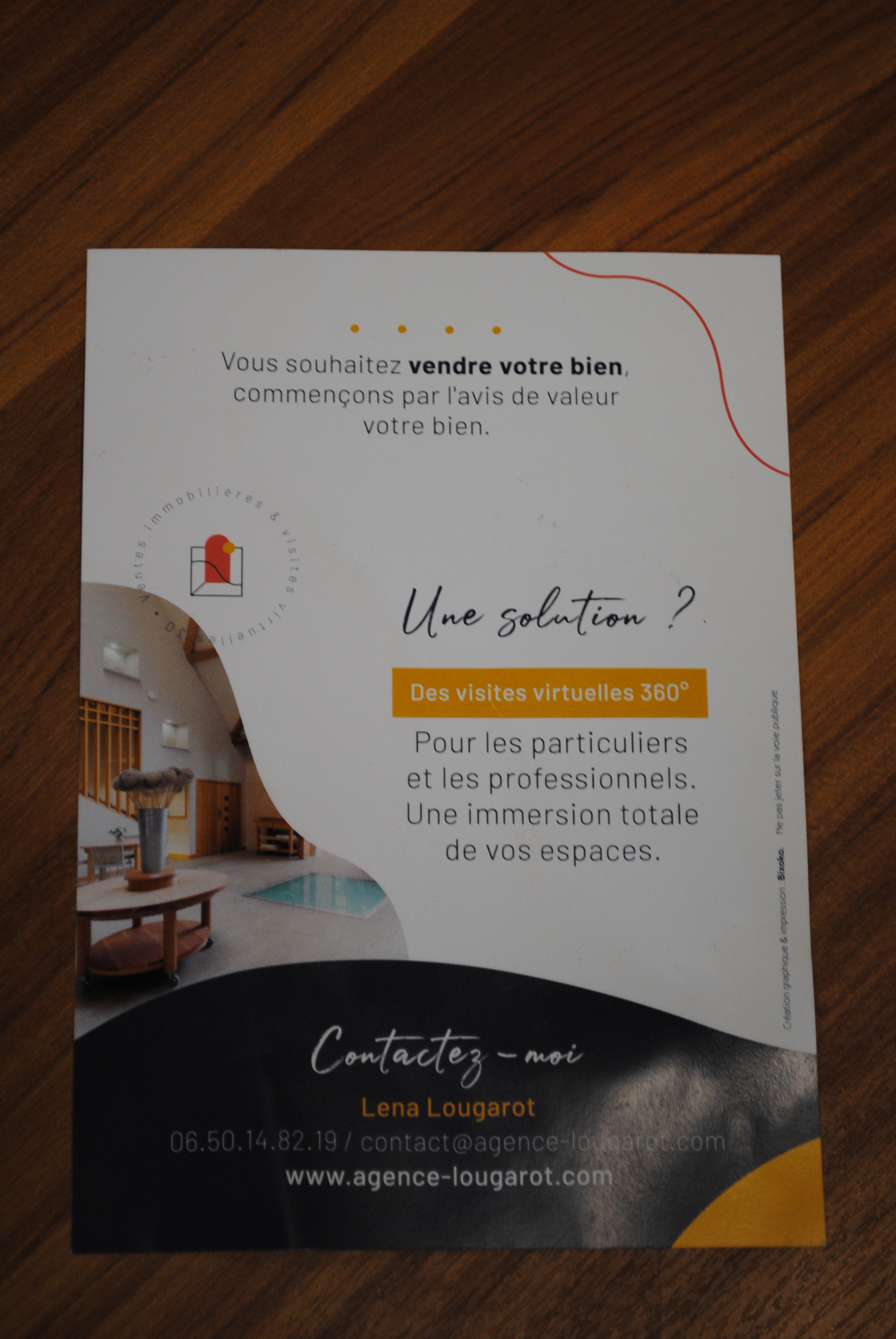 Lena Lougarot'ek "Lougarot agence" hots etxe saltzeko edota 3D'rekilako bisita ezbardinak antolatzeko parada eskentzen dü.