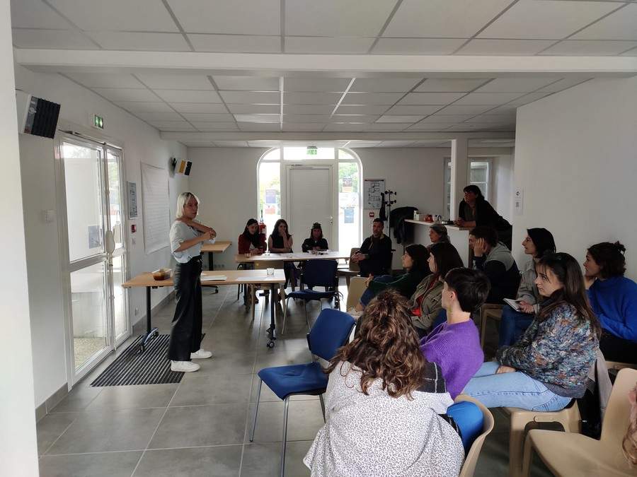 Neskenegun hontan 30 bat jentek parte hartü düe Eneko Bidegain idazle eta ikerlariak, eta Asisko Urmeneta marrazkilariar...