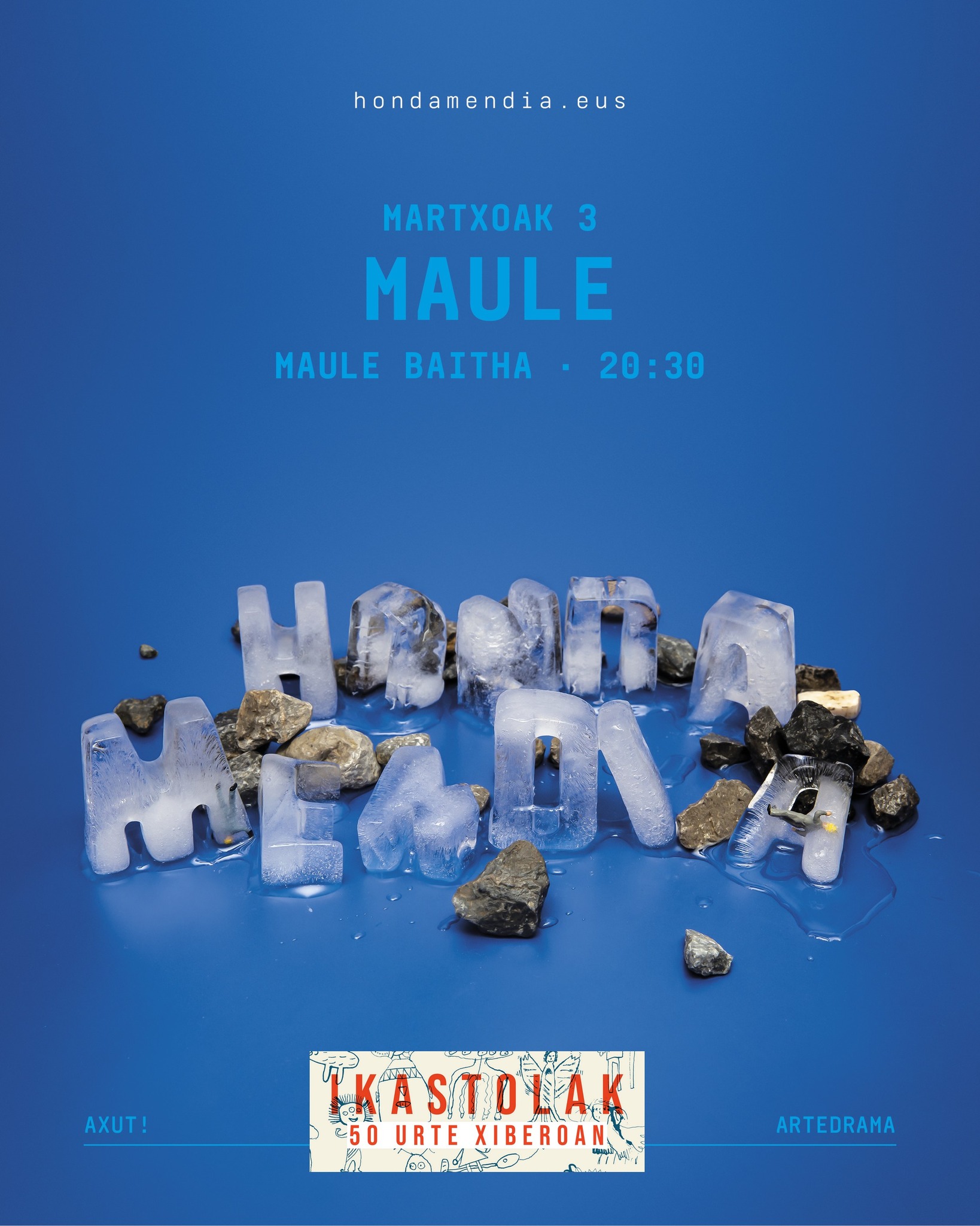 Axut! konpaniak eüskarazko sorkuntzaren süstatzea dü helbürüa. ALdi hontan gure historia barnatü nahi züen ere, Zaldibarreko hondarkintegiko istripüa aipatüz.