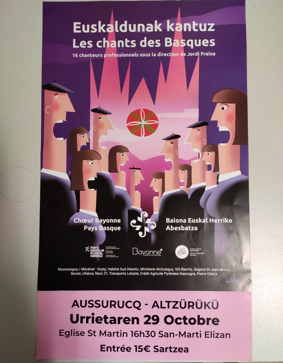 Baionako herriko ideia batetarik partitürik, abesbatza profesional baten montatzera erabaki düe azken urte hontan eta bere lehen kontzertüak emanen dütü.