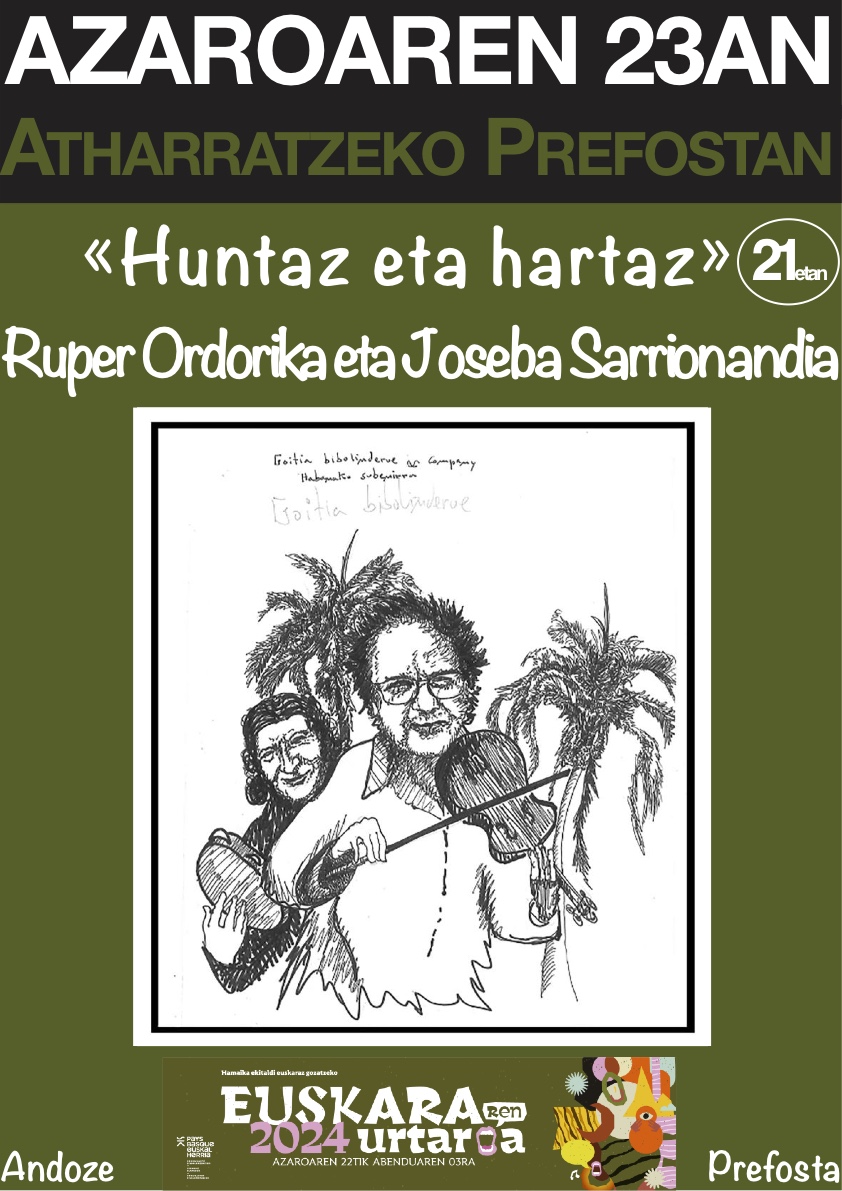 Ondotik gaüko bederatziak aitzina, Ruper Ordorika eta Joseba Sarrionandia Prefostako sütondolat hüilantuko dira, düala urtea sortü züen « Huntaz ala Hartaz » emanaldiarekin.